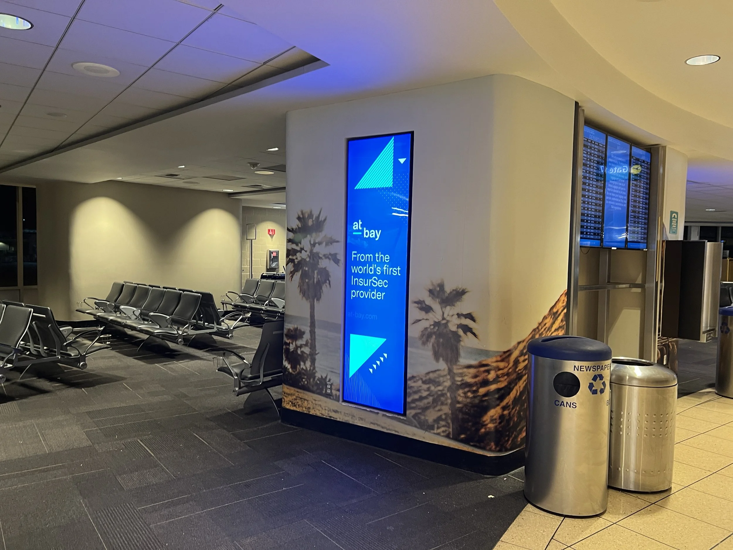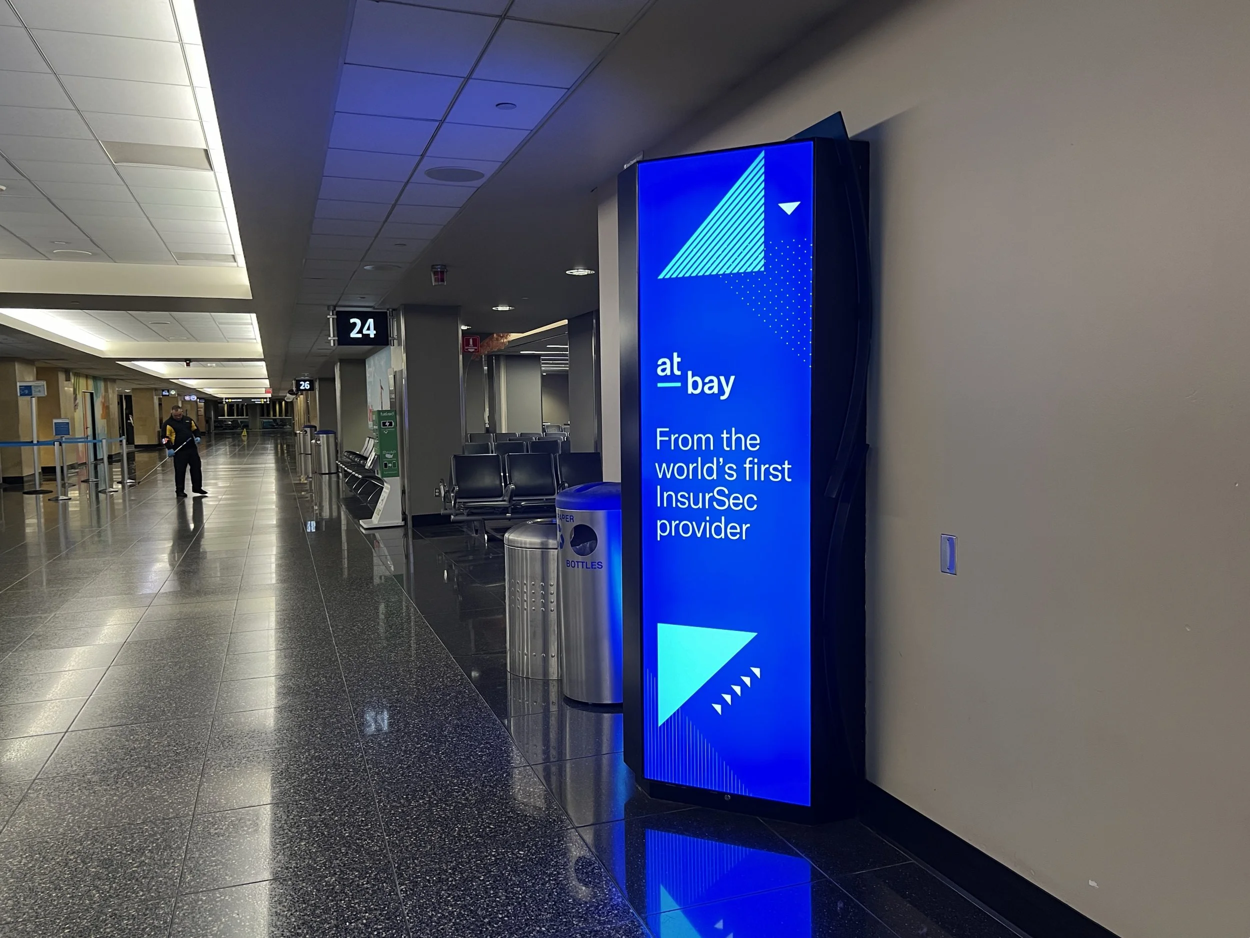 My role was to design At-Bay’s out-of-home marketing assets for the event to promote brand awareness and a positive perception to wholesale broker insurance brokers. These creatives include an animated airport digital ad, vertical pole banners, and horizontal barricade banners.
